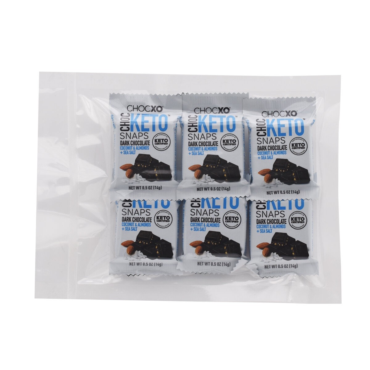 成分:有機黑巧克力(有機可可塊、有機可可脂、有機低脂可可粉、有機蔗糖、有機香草提取物)、有機椰子、有機杏仁、海鹽。