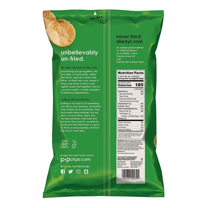 Dried Potato, Rice Flour, Sunflower and/or Safflower Oil, Seasoning (Whey, Onion Powder, Salt, Sugar, Sour Cream Powder [Cream, Nonfat Dry Milk, Cultures], Garlic Powder, Yeast Extract, Citric Acid, Dehydrated Parsley, Maltodextrin, Natural Flavors, Whey Protein Concentrate, Whey Solids, Cream, Milk Fat, Nonfat Dry Milk, Skim Milk Solids), Potato Starch.