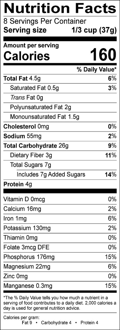 成分 (Ingredients):燕麥, 蜂蜜, 大麻, 有機蔗糖, 糙米, 葵花籽油, 天然鹽, 生育酚 (維生素E)。Oats, Honey, Hemp, Organic Cane Sugar, Brown Rice, Sunflower Oil, Unrefined Salt, Tocopherols (Vitamin E).