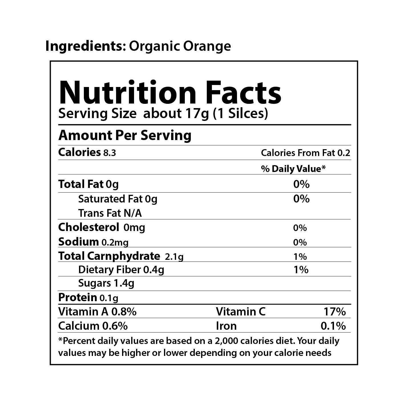 Organic dried oranges are an all natural treat. These dried orange slices are simply wonderful to snack on or to add to beverages such as tea. They have an invigorating citrus taste and aroma. Packed with vitamin C and antioxidants, organic dried oranges are a healthy addition to your diet.