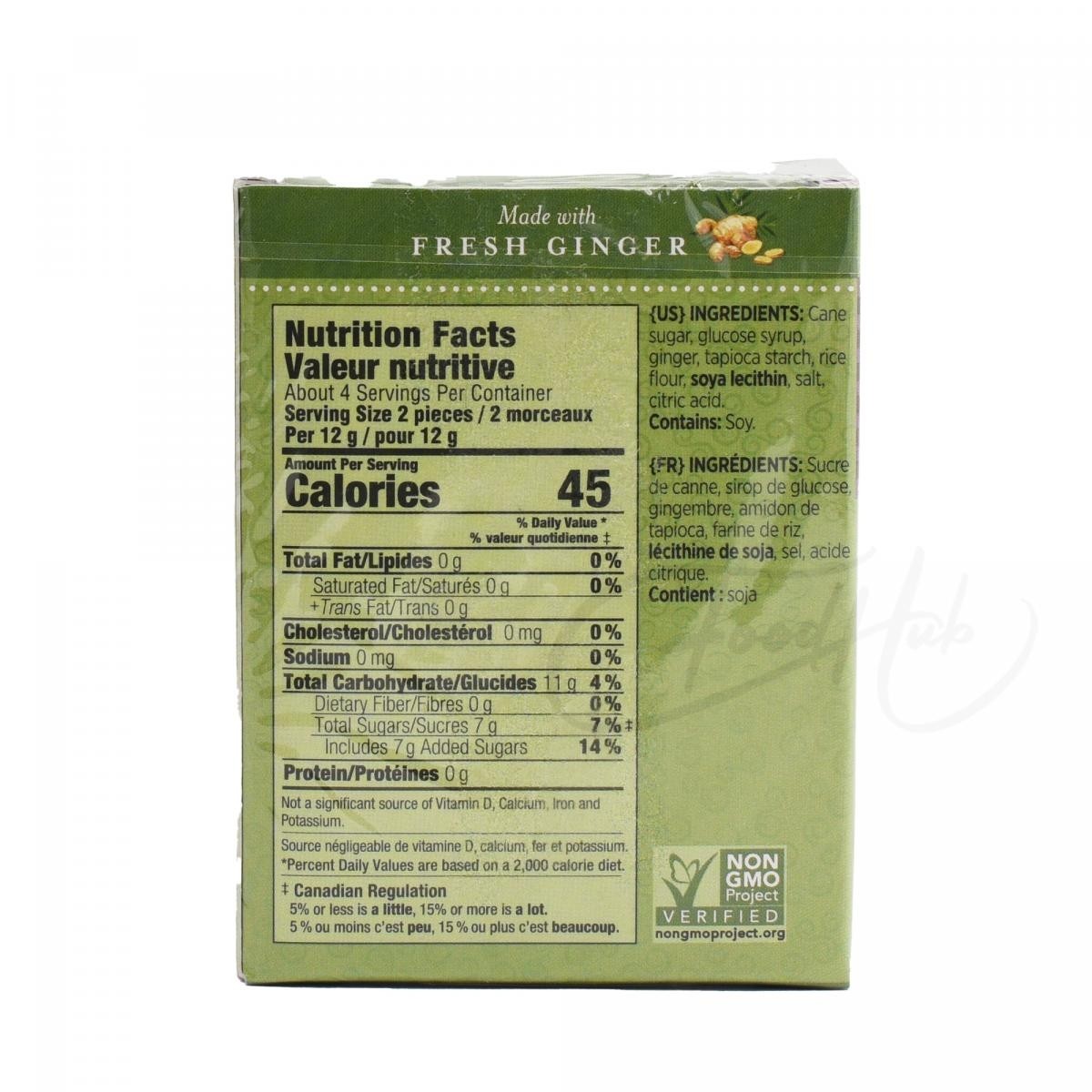 Feature :Great for travel and nausea-related conditionsGM Free | Gluten Free | VeganWorld’s #1 selling ginger candySweetened with sustainable sugar – nothing artificialSustainably farmed gingeCountry of Origin : IndonesiaNet Weight : 45g